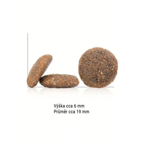 Analytické zložky: hrubý proteín 21 %; hrubý tuk 10 %; hrubá vláknina 2,5 %; hrubý popol 9,5 %; vápnik 1,6 %; fosfor 1,2 %; sodík 0,4 %; omega-6 mastné kyseliny 4 %; omega-3 mastné kyseliny 0,5 %