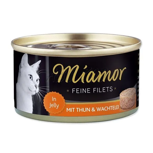 Konzerva s kúskami tuniaka a prepeličích vajec v lahodnom želé pre dospelé mačky všetkých plemien.