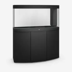 Skrinka pre akvárium JUWEL Vision 260, čierna 121 x 46 x 80 cm. Predná strana stolíka je oválna.