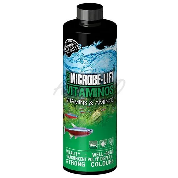 • Vitaminos  je špeciálne vyvinutý doplnok stravy s vitamínmi a aminokyselinami pre všetky sladkovodné akváriá.