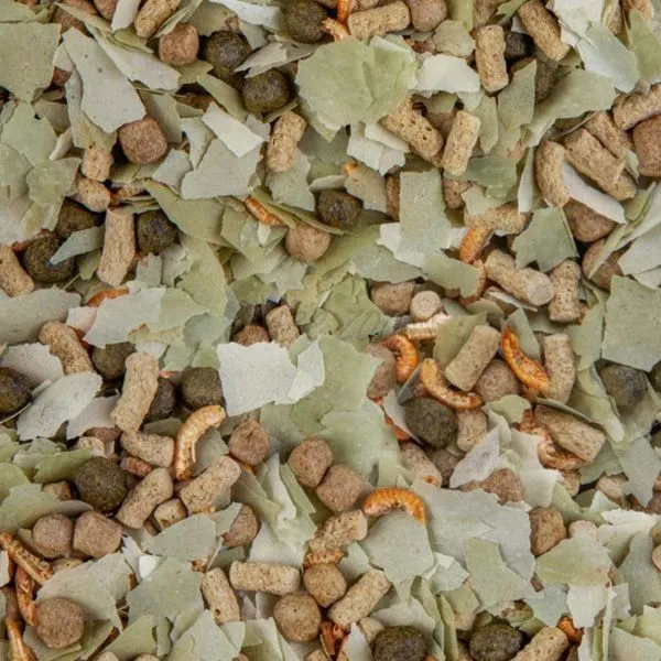 Kompletné krmivo vo forme pestrej zmesi vločiek, troch druhov granúl a celých gammarusov pre celoročné kŕmenie rôznych druhov rýb v jazierku. Vďaka starostlivo spracovaným prírodným surovinám podporuje zdravý rast, silnú imunitu a vitalitu rýb všetkých veľkostí.