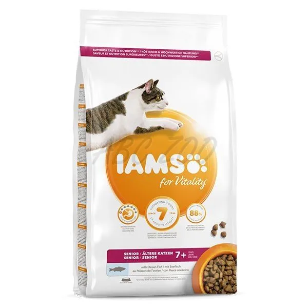 Kompletné a vyvážené krmivo pre staršie mačky všetkých plemien s morskými rybami.