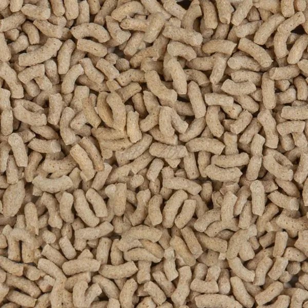 Zloženie: pšeničná múka, kukuričný škrob, pšeničný lepok, rybia múčka, hmyzia múčka (Hermetia illucens) (4 %), krill múčka (4 %), pivovarské kvasnice, rybí olej, pšeničné klíčky, mannan-oligosacharidy (0,4 %), mäso zo zelenoústej mušle, riasa Haematococcus, cesnak.