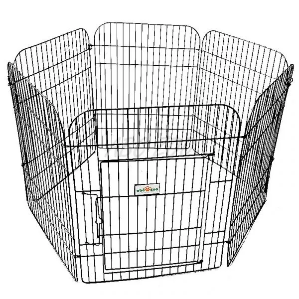 Skladacia 6 dielna ohrádka v čiernej farbe s dvierkami, pre malé psy a šteňatá.