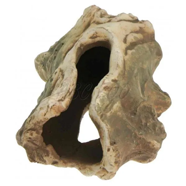 Ozdobná keramická dekorácia do akvária imitujúca koreň s otvormi pre úkryt rýb.