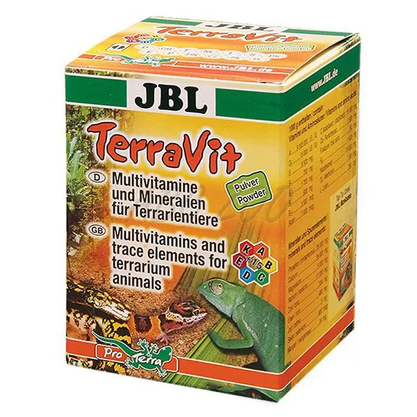 JBL TerraVit Pulver obsahuje špeciálny, požiadavkám teráriových zvierat (plazy a obojživelníky) prispôsobený komplex vitamínov, minerálov a stopových prvkov.