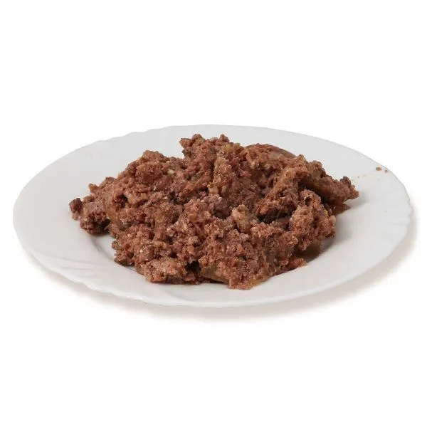 Zloženie: hovädzie (mäso, srdce, pľúca, pečeň, vemeno, obličky) 65 %, uhličitan vápenatý