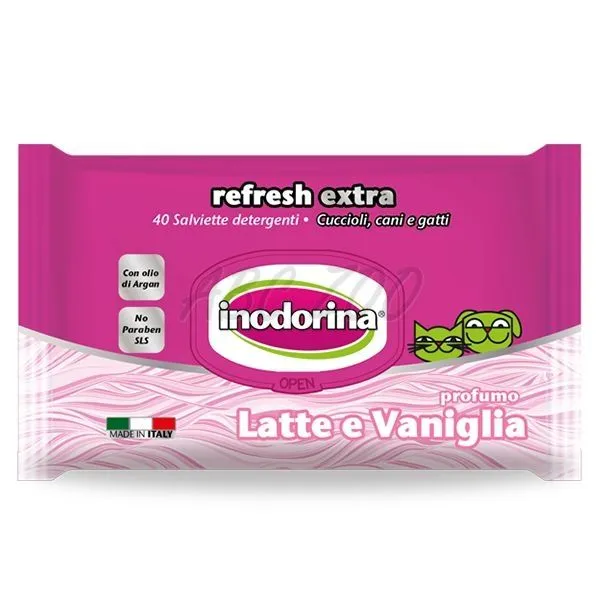 Talianské vlhčené čistiace obrúsky s vôňou mlieka a vanilky pre čistenie a osvieženie srsti zvierat. Viac detailov