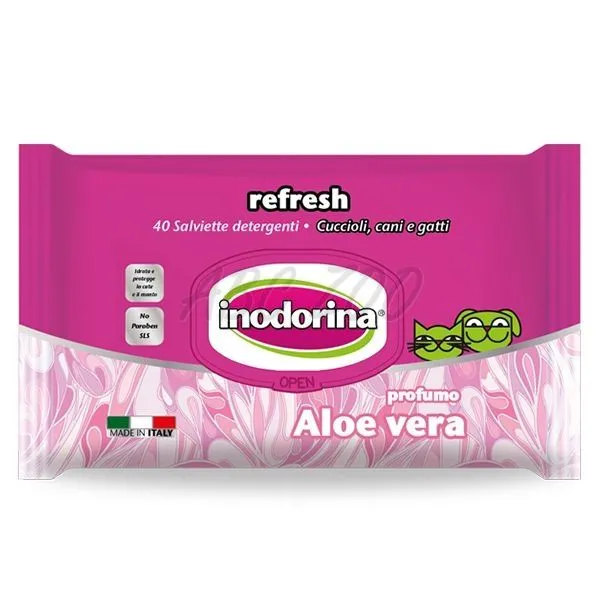 Talianské vlhčené čistiace obrúsky s vôňou aloe vera pre čistenie a osvieženie srsti zvierat. Viac detailov