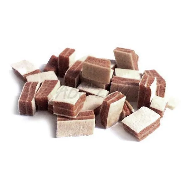 Mäsová odmena pre psy a mačky s kačkou a treskou, vo forme sendvičových kociek.