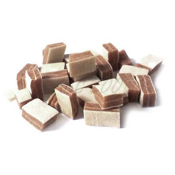 Mäsová odmena pre psy a mačky s kuracinou a treskou, vo forme sendvičových kociek.