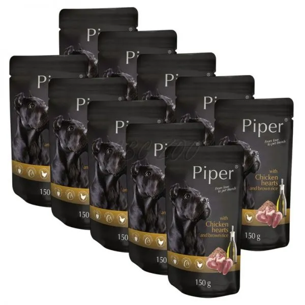 Kapsička Piper Adult s kuracími srdciami a hnedou ryžou 10 x 150 g