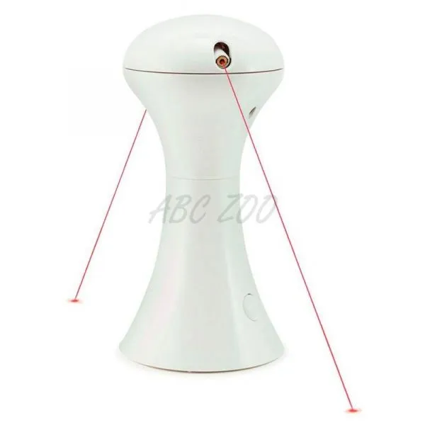 • statická laserová hračka s 2 lasermi na vrchnej časti hračky rotujúcimi v 360 stupňovom uhle