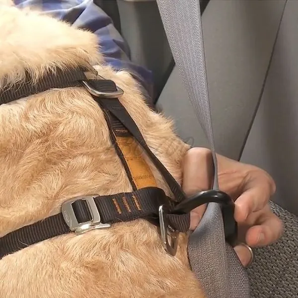 • zahŕňa 2 pútka na pripnutie vodítka - bezpečnostné vzadu a jedno protiťahacie vpredu na hrudi (ak chcete postroj využiť aj mimo auta pri psoch s tendenciou ťahať