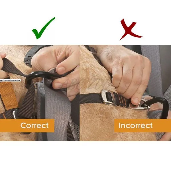 • zahŕňa 2 pútka na pripnutie vodítka - bezpečnostné vzadu a jedno protiťahacie vpredu na hrudi (ak chcete postroj využiť aj mimo auta pri psoch s tendenciou ťahať