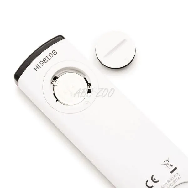 Obsah balenia: pH tester HI98108, batéria, návod, štartovacia sada pufrov a roztokov (2x20 ml pH 7,01 HI70007, 1x20 ml pH 4,01 HI70004, 1x20 ml čistiaci roztok HI700601), plastový kufrík