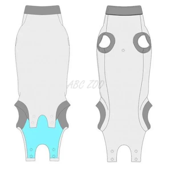 • mäkký, elastický a ochranný pás okolo predných, zadných končatín a okolo chvosta zaisťuje, že Recovery Suit® sa do kože nezarezáva, psy sa tak môžu pohybovať