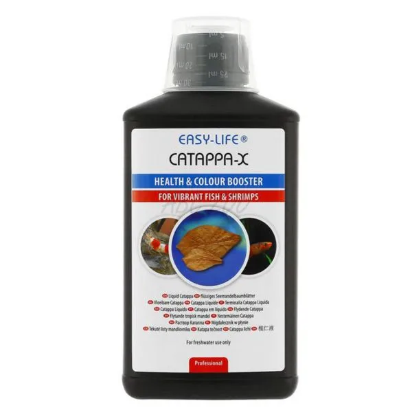 Listy z mandľovníku (Catappa) sú známe svojimi liečivými účinkami na ryby a krevetky: znižujú počet mikroorganizmov (menej patogénov), zabraňujú plesňovým infekciám, podporujú rast, predchádzajú problémom s hlienovitým povlakom a stimulujú vitalitu a sfarbenie kreviet a rýb. Nevýhodou týchto listov však je, že sfarbujú vodu do hneda a spôsobujú ďalšie organické znečistenie. Produkt Easy-Life Catappa-X tieto nevýhody nemá a zároveň ponúka všetky výhody: voda zostáva čistá, zatiaľ čo vitalita a sfarbenie rýb a kreviet sa viditeľne zlepšuje.