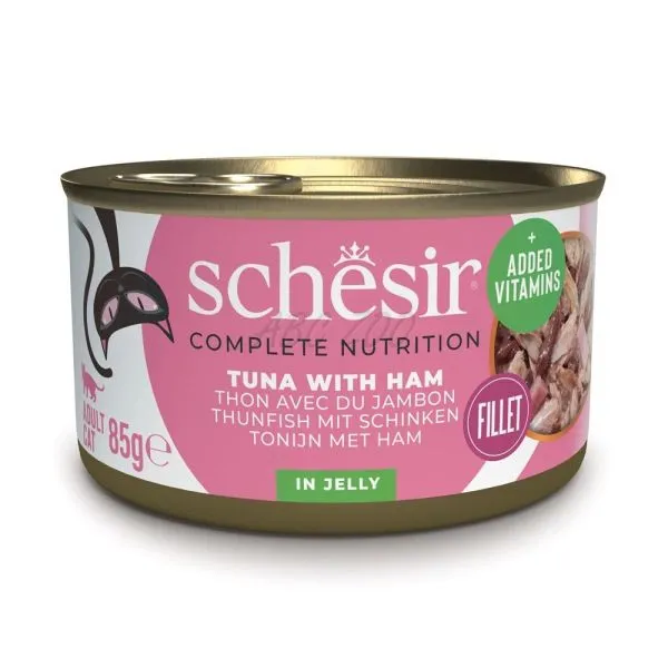 Schesir konzerva pre dospelé mačky s tuniakom a šunkou v želé. Viac detailov