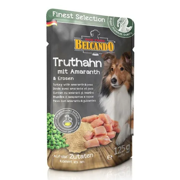Belcando kapsička je zo šťavnatého morčacieho mäsa, kombinovaná s najkvalitnejšími ingredienciami ako amarant a hrášok.