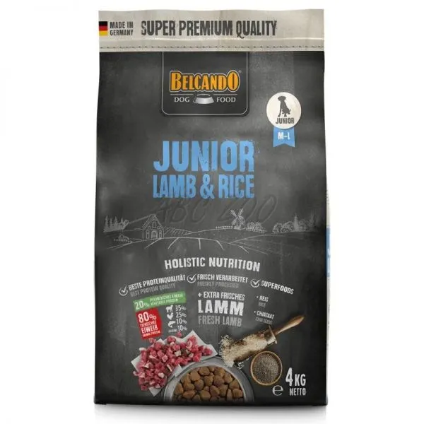 BELCANDO Junior Lamb & Rice je kompletné, vyvážené krmivo s jahňacinou a ryžou pre šteňatá stredných a veľkých plemien od 4 mesiacov.