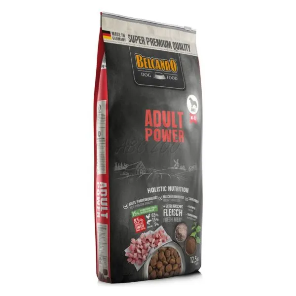 BELCANDO Adult Power je kompletné superprémiové krmivo určené pre dospelých psov vo vysokej záťaži a taktiež pre vysoký obsah proteínov a tukov aj pre gravidné a laktujúce sučky.