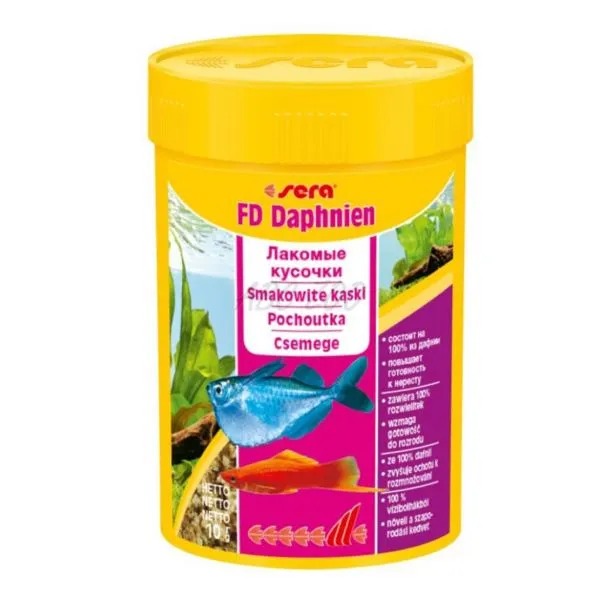 Prírodná maškrta zo 100 % dafnií určená pre všetky väčšie akváriové ryby. Dafnie sú prirodzenou súčasťou potravy mnohých druhov rýb a vďaka vysokému obsahu vlákniny a minerálov podporujú metabolizmus aj ochotu k nereseniu. Šetrné sušenie na slnku zachováva všetky cenné živiny a robí z tejto maškrty výživný doplnok bežnej stravy.