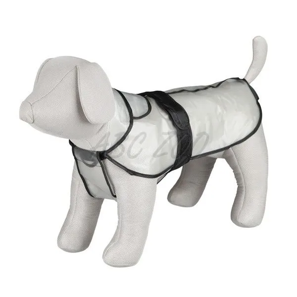 Pršiplášť z PVC pre psa so suchým zipsom a reflexnou labkou.