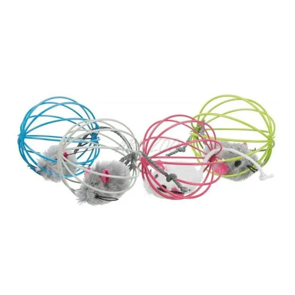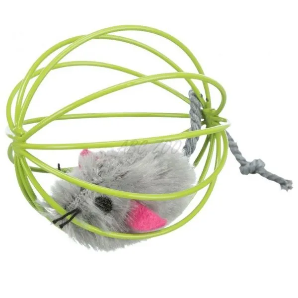 Hračka pre mačku - železná mriežkovaná loptička s malou myškou.