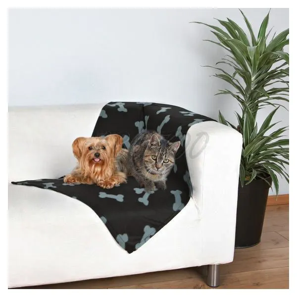 Čierna deka so sivými kostičkami pre psov a mačky na ochranu nábytku.