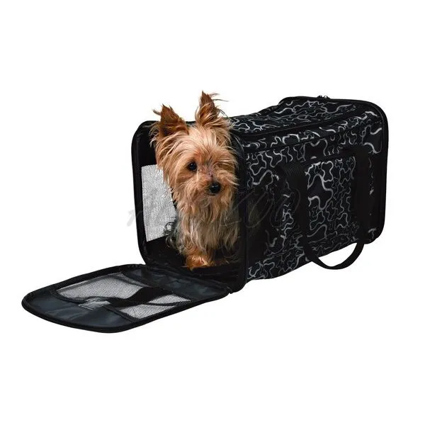 Taška na prenos zvieratiek v čiernej farbe a s motívom kostičiek - skladacia, 26 x 27 x 42 cm.