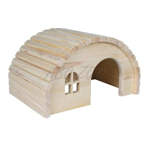 Domček pre hlodavca z kvalitného borovicového dreva - s oblou strechou, okienkom a oblúkovým vchodom.