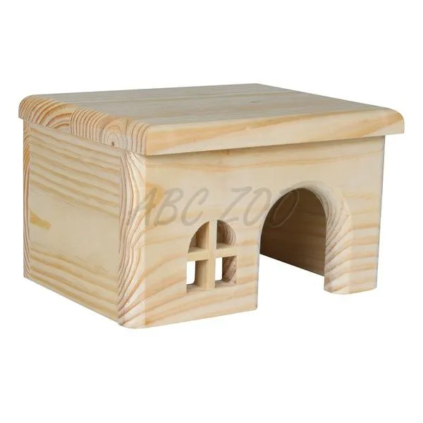 Domček pre hlodavca s okienkom a dverovým výrezom, drevený. Viac detailov