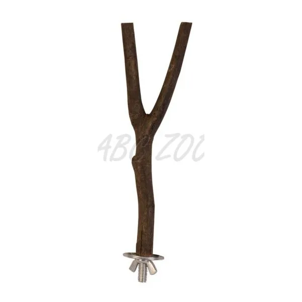 Bidlo z dreva v tvare Y pre vtáky, so skrutkou na uchytenie o klietku.