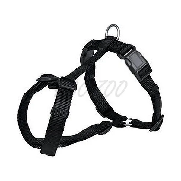 Nylonový postroj pre psy čiernej farby, čierne zapínanie.