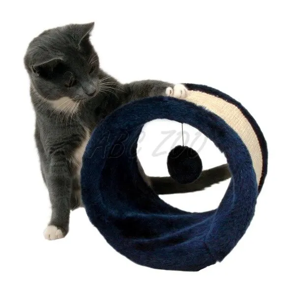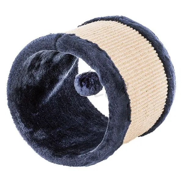 Sisalové škrabadlo pre mačky v tvare tunela s plyšovou, hrkajúcou loptičkou na gumičke, vo vnútri plyšové polstrovanie.