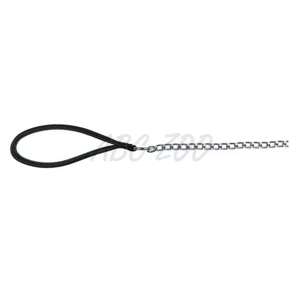 Reťazové pochrómované vodítko s čiernou nylonovou rúčkou a karabíkou.