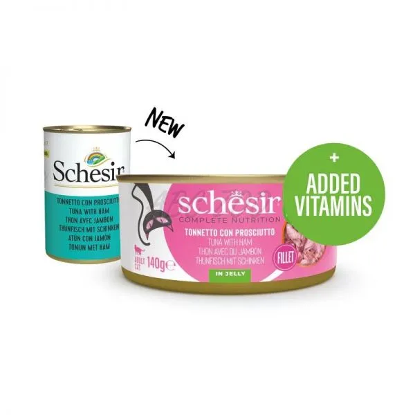 Schesir konzerva pre dospelé mačky s tuniakom a šunkou v želé. Viac detailov