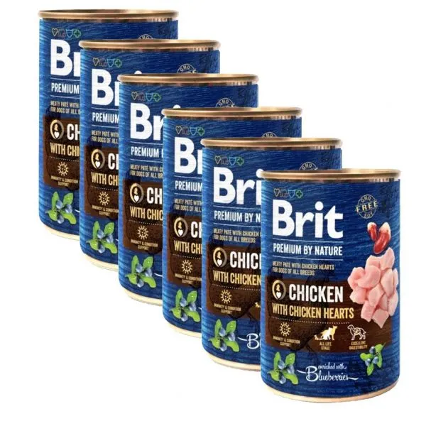 Konzerva Brit premium by Nature Chicken & Hearts 6 x 400 g