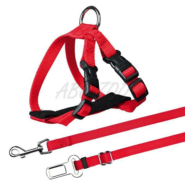 Nylonový postroj do auta pre mačky červenej farby, chráni človeka aj zviera.