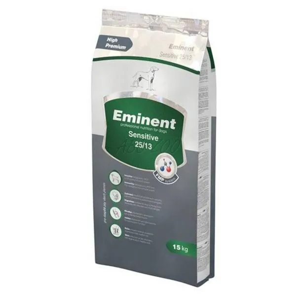 EMINENT SENSITIVE je kompletné krmivo so špeciálne upravovaným hydinovým mäsom a obilninami, určené pre psov so zvýšenou citlivosťou na krmivo, pre alergických psov alebo pri problémoch s hnačkou.