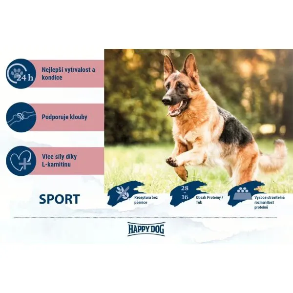 HD Sport je kompletné vyvážené krmivo pre dospelé psy od 11 kg, najmä pre športové a pracovné psy s vysokou potrebou energie, s obsahom 28 % proteínov / 16 % tukov.
