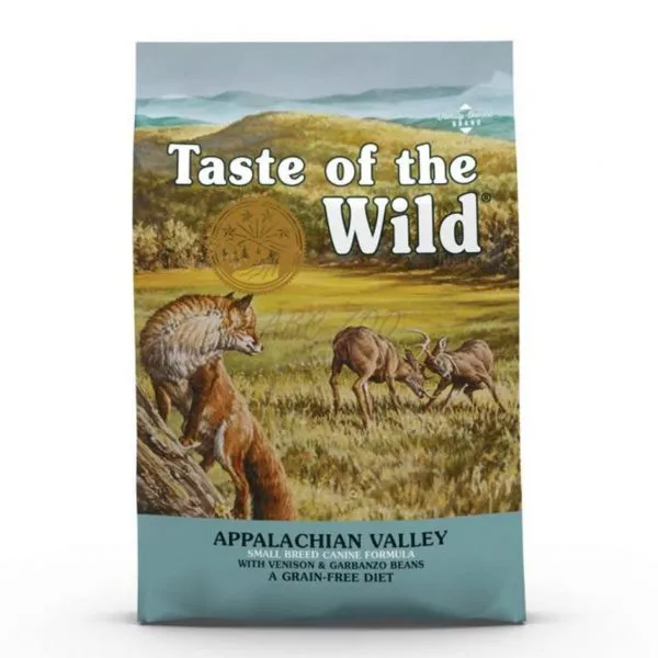 TASTE OF THE WILD Appalachian Valley je kompletné krmivo vo forme granúl, určené pre dospelých psov malých plemien.  Krmivá tejto značky sú ocenené najvyšším možným hodnotením kvality organizácie Dog Food Analysis.