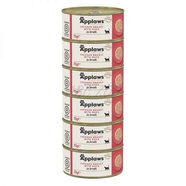 Applaws Konzerva pre mačky s kuracími prsiami a kačkou vo vývare 6 x 70 g