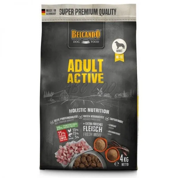 BELCANDO Adult Active je kompletné superprémiové krmivo určené pre dospelých psov so zvýšenou aktivitou, obsah proteínov a tukov vyhovuje energetickým potrebám aktívneho psa.