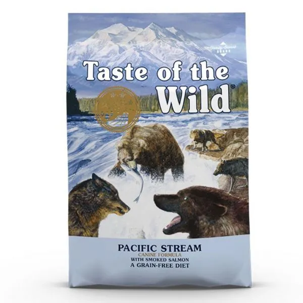 TASTE OF THE WILD Pacific Stream Canine je kompletné krmivo vo forme granúl, určené pre dospelých psov všetkých plemien.  Krmivá tejto značky sú ocenené najvyšším možným hodnotením kvality organizácie Dog Food Analysis.