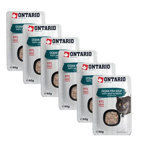 Ontario vývar pre dospelé mačky s obsahom čerstvých kúskov makrely a tuniaka s obsahom mäsa až 97 %.