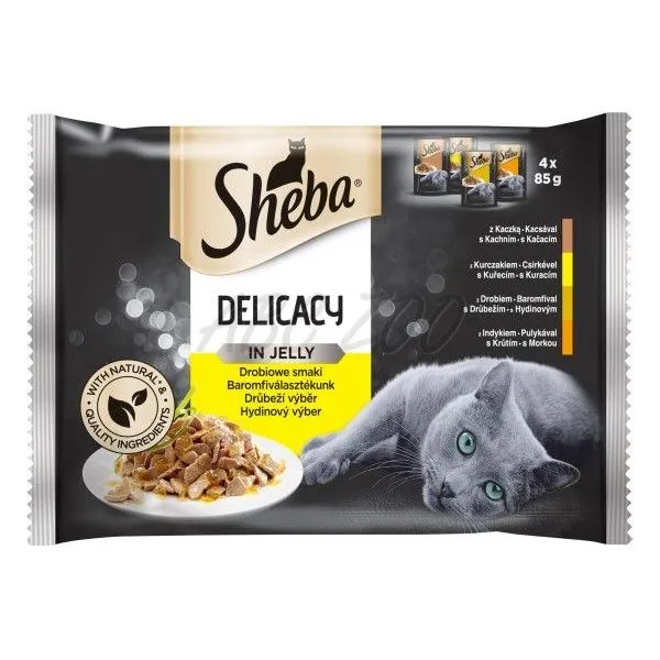 Sheba Delicacy je hydinový výber kapsičiek v želé pre dospelé mačky.