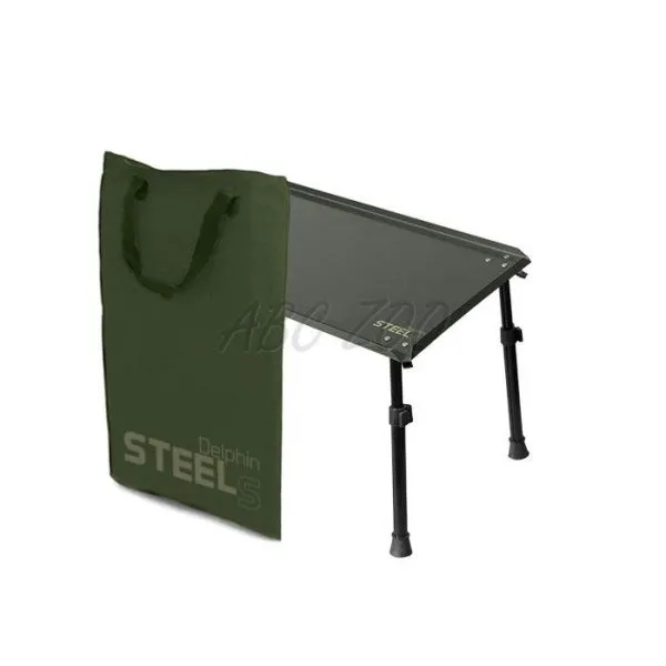 Odolný a praktický stolík STEELS využijete pri viazaní montáží, rovnako ako pri rannej kávičke v bivaku či večernom grilovaní. Kovová pracovná doska stolíka má rozmery 55x35cm. Rohy stolíka sú otvorené kvôli lepšiemu odvodu vody, ak stolík náhodou necháte pred bivakom a spŕchne. STEELS disponuje robustnými teleskopickými nohami. Nastaviteľná výška stolíka sa tak pohybuje v rozmedzí 27-41cm. Nohy je možné "zamknúť" špeciálnym mechanizmom, ktorý predchádza neželanému zrúteniu celého stolíka. Pätky nôh su pogumované. Stolík sa dodáva s prepravnou taškou.