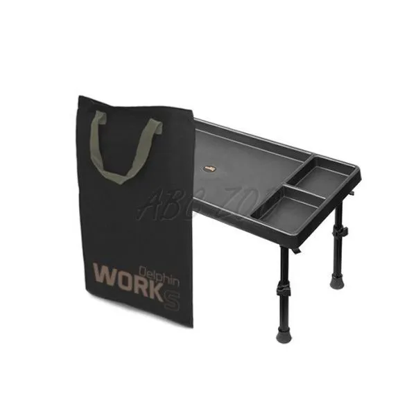 Multifunkčný stolík, ktorý sa stane vašim neoceniteľným spoločníkom. S veľkorysými rozmermi pracovnej plochy až 60x30cm ponúka široké možnosti využitia. Pracovný priestor je rozdelený na niekoľko priehradiek. Pri viazaní montáží si do jednotlivých priečinkov môžete prehľadne uložiť ich komponenty, pri love na feeder si do nich môžete zas nasypať viac druhov nástrah, krmítka a pod. Plastový stolík WORKS je skrátka užitočným kúskom rybárskeho vybavenia, ktorý budete používať stále. Má teleskopické nohy, ktoré dokážete zdvihnúť o 10cm, takže samotná výška stolíka sa tak pohybuje od 24 do 34cm (meraný vrchný okraj stolíka). Nohy je možné zamknúť špeciálnym blokovacím systémom, čiže nehrozí zrútenie stolíka a vecí na ňom. Konce nôh sú vybavené gumenými koncovkami pre lepšiu stabilitu. WORKS sa dodáva s prepravnou taškou.